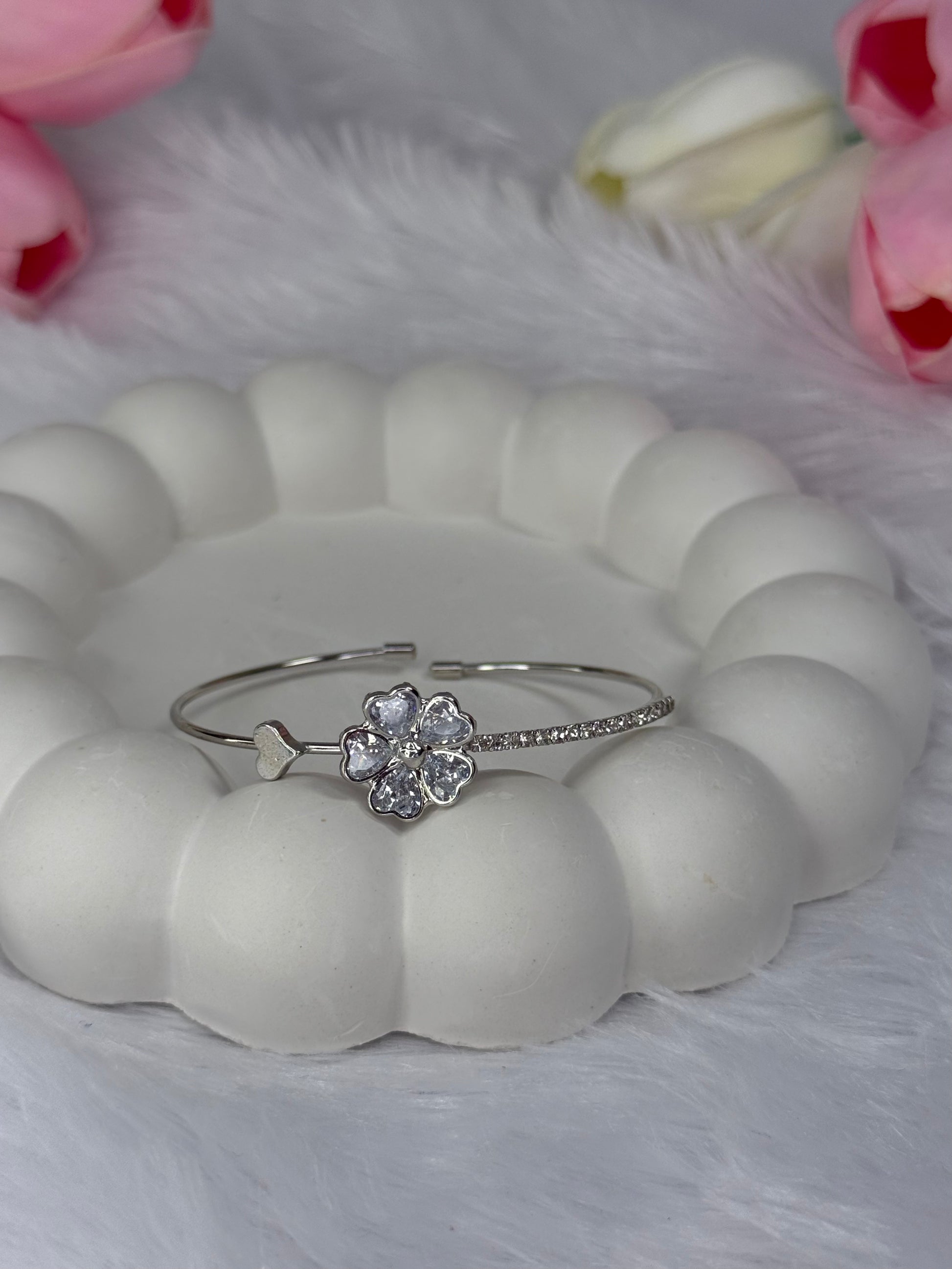floral with Heart Gem Adjustable Bracelet | Anti-Tarnish