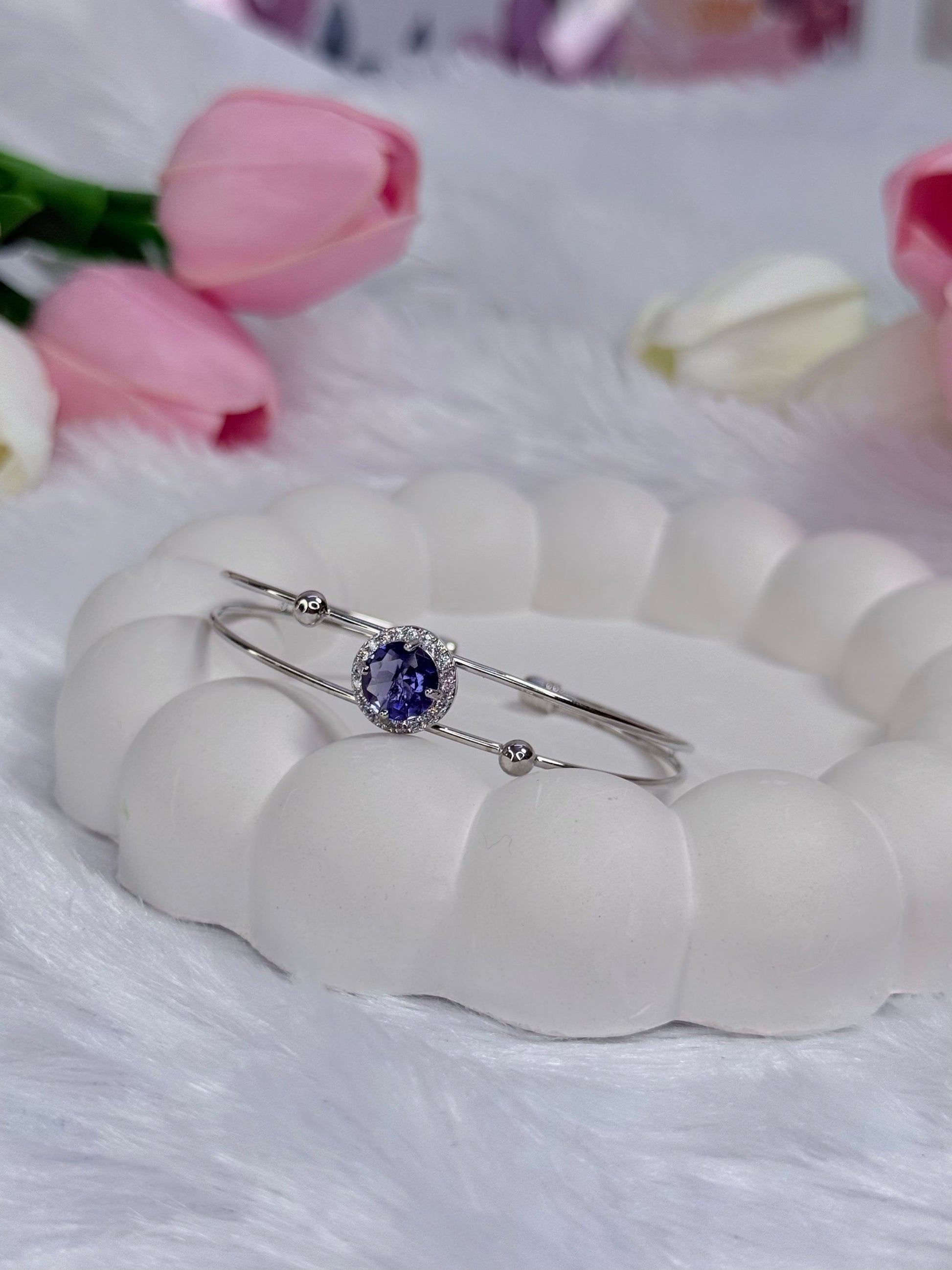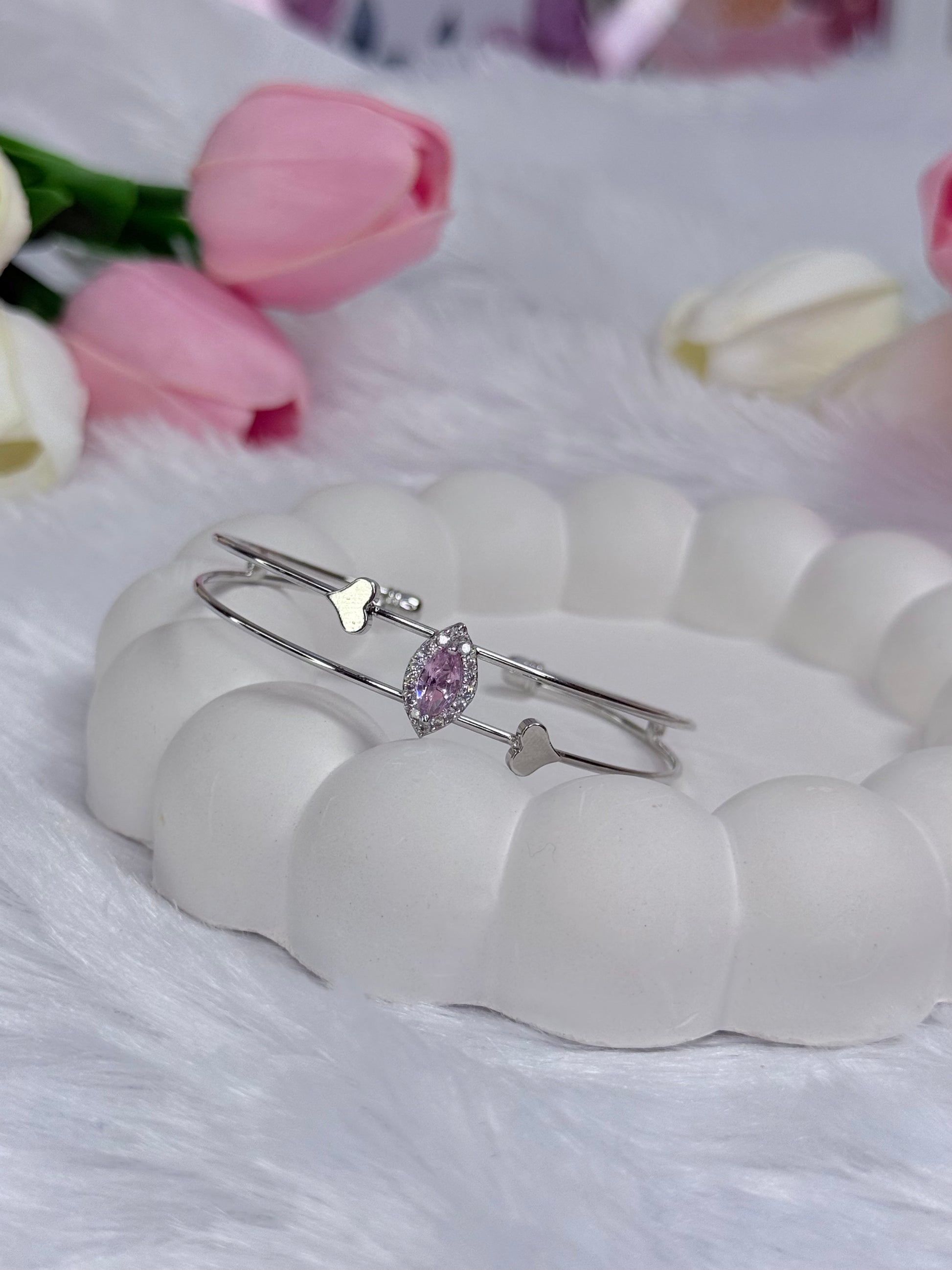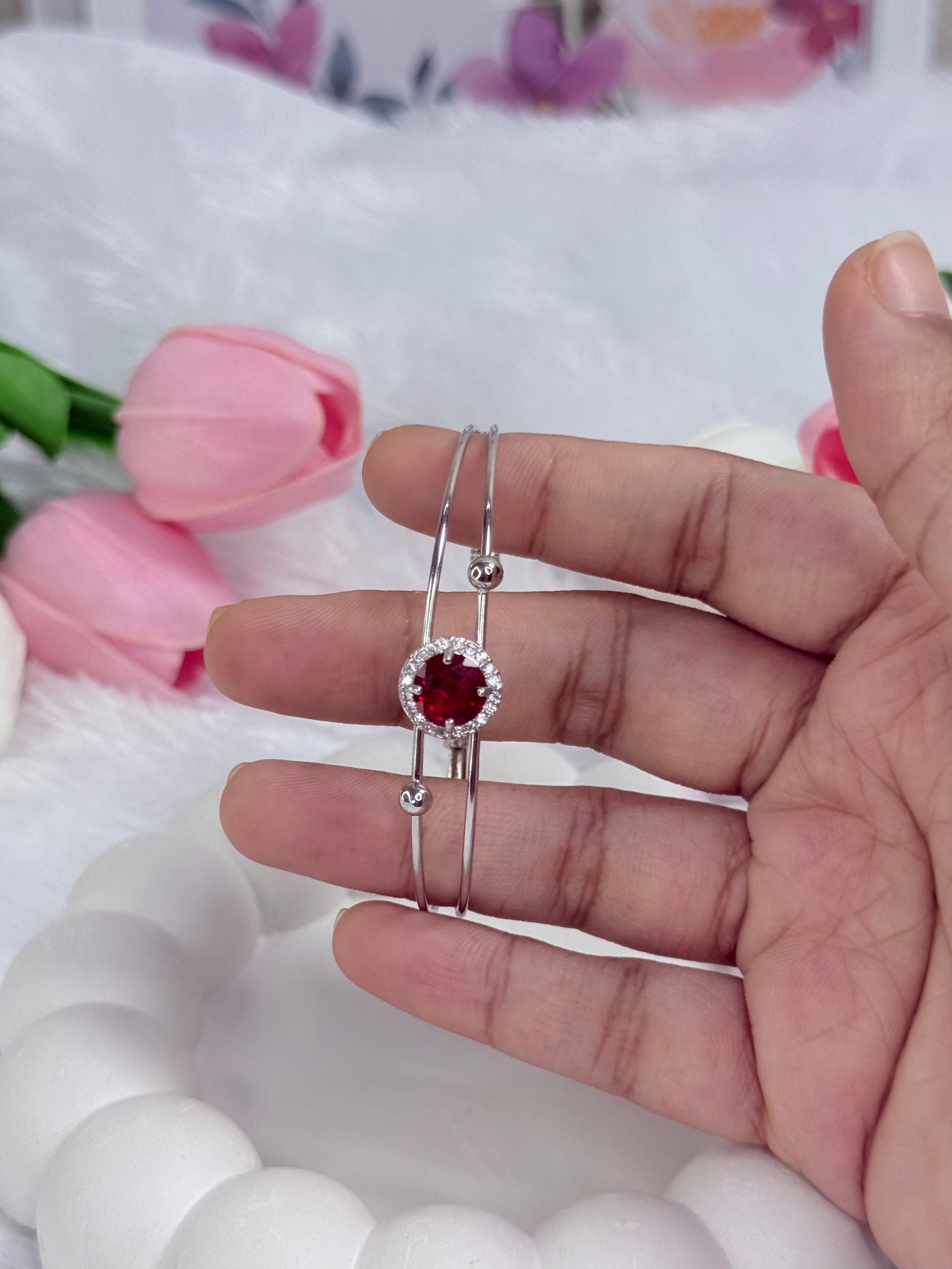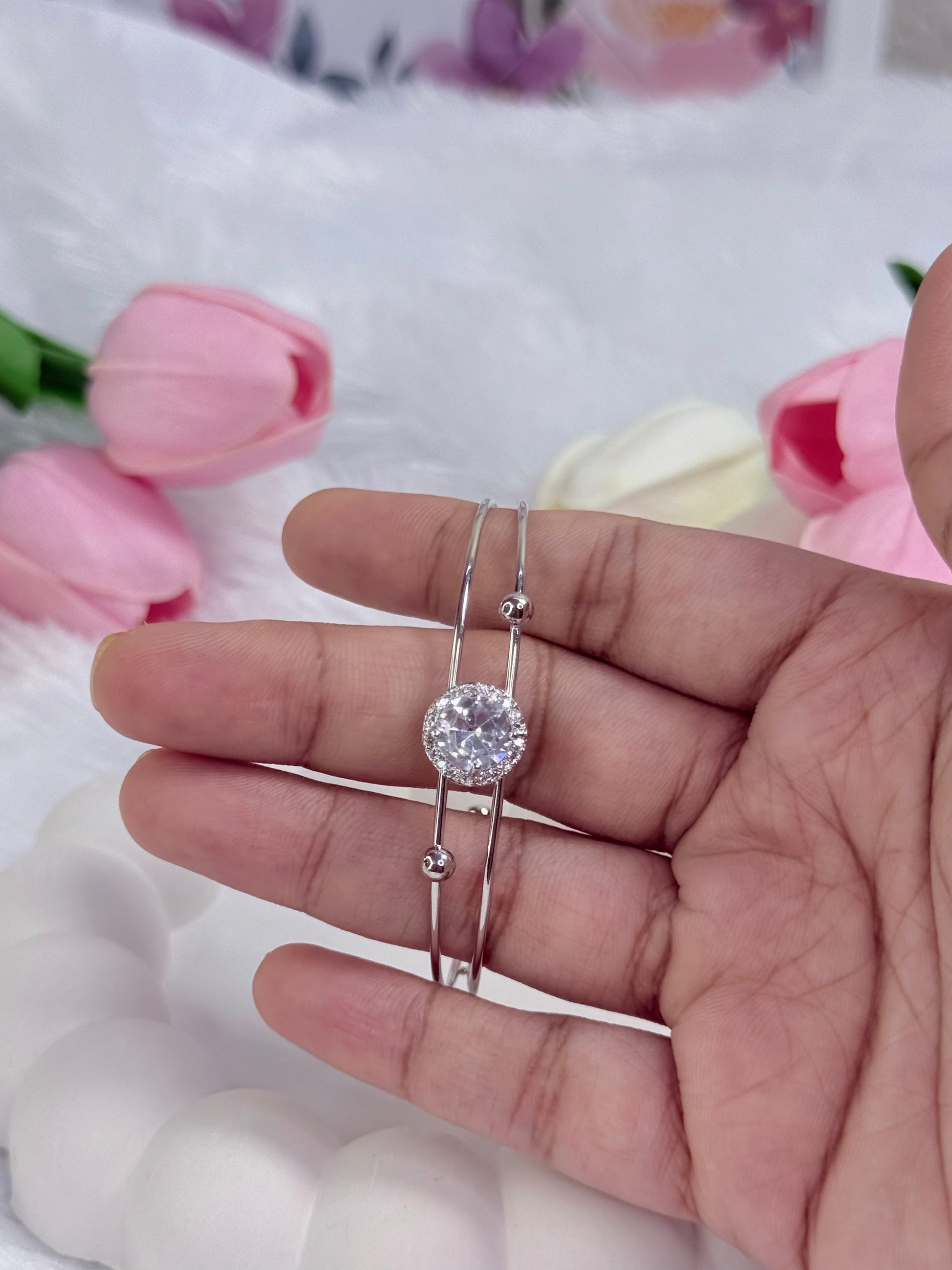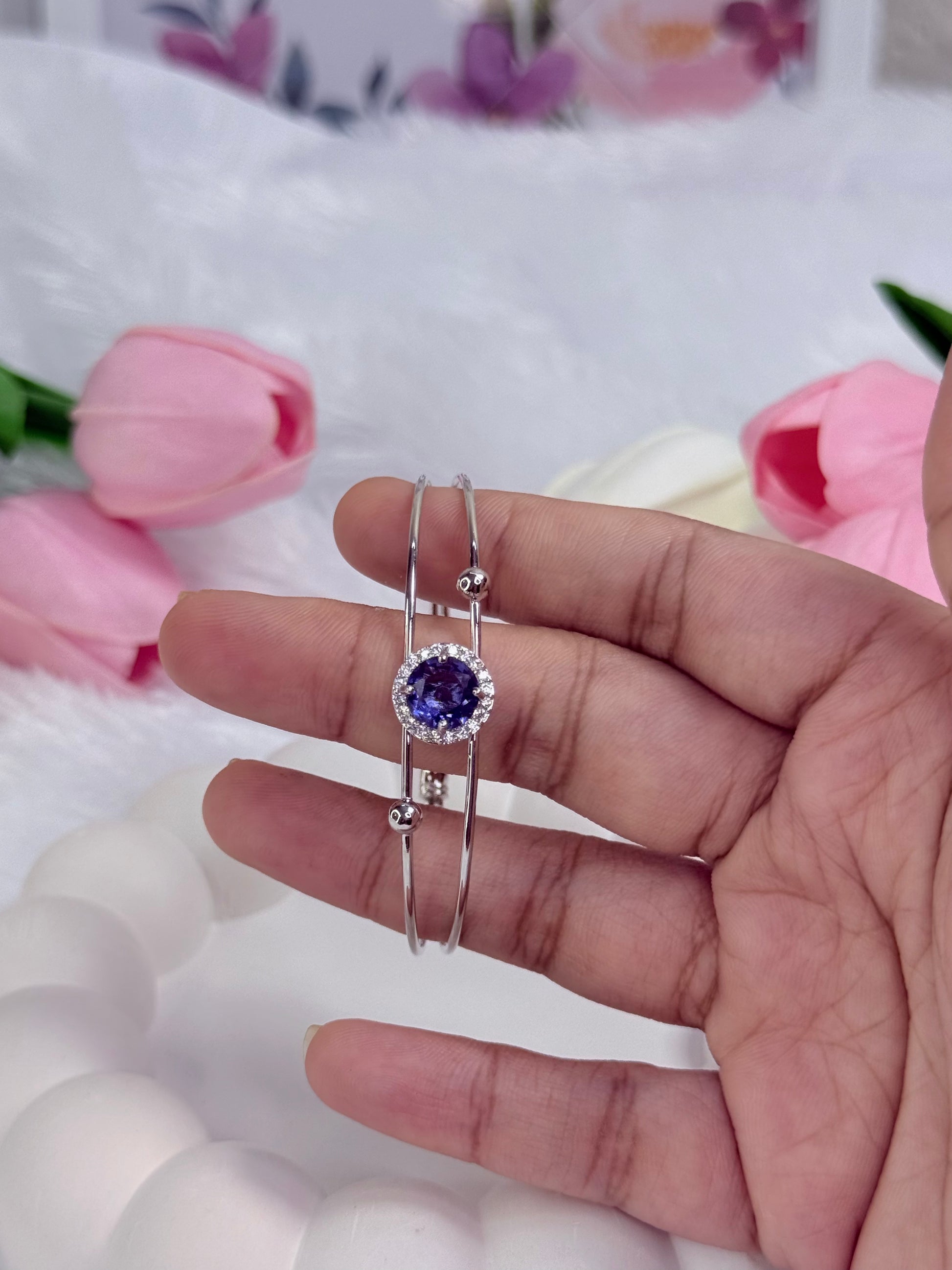 Silver Rounded Bracelet with Gem stoned | Adjustable Bracelet